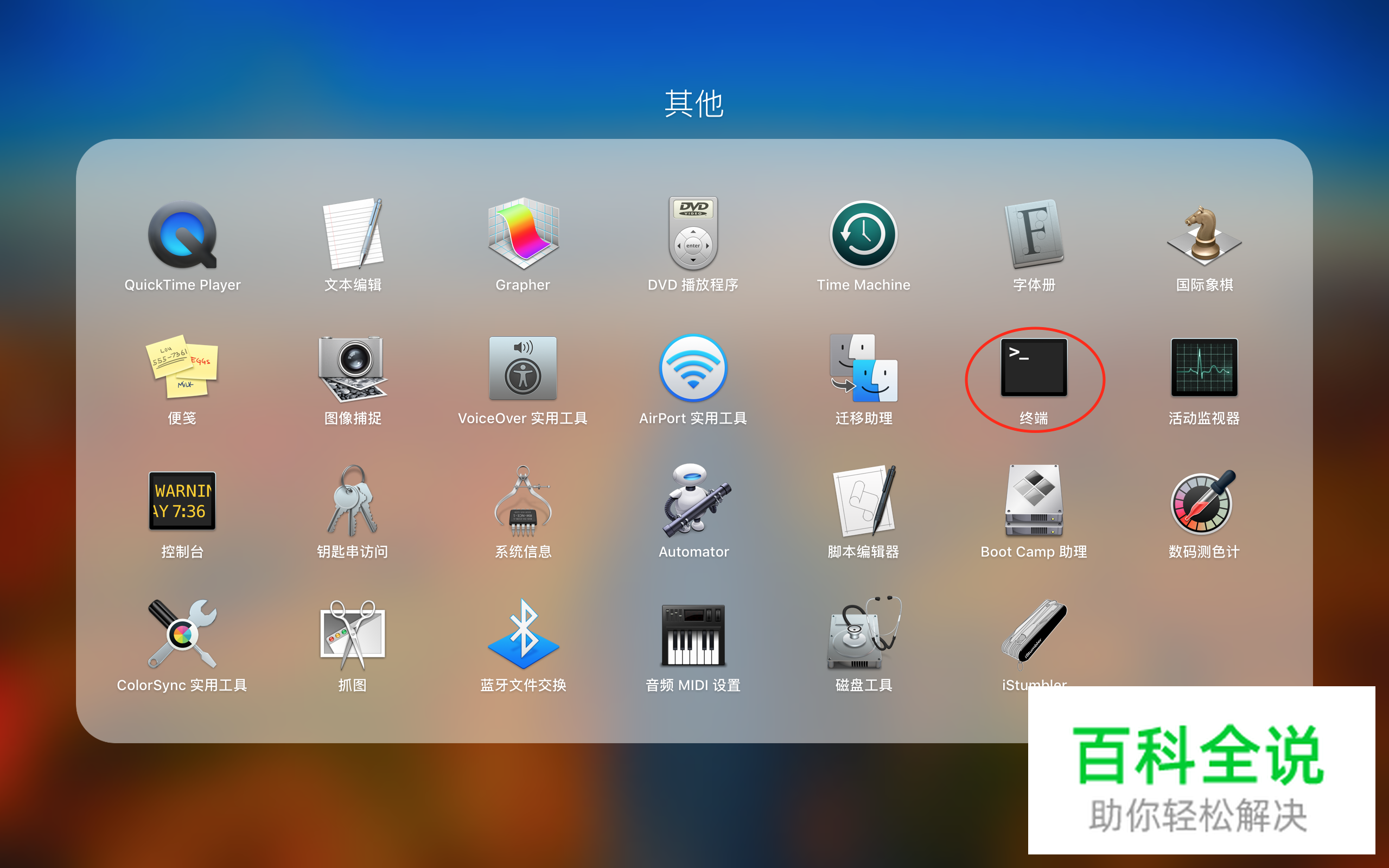 我们需要打开macbook上的自带的一个软件。这个软件就是终端。