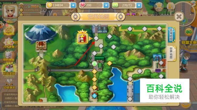 进入游戏后,我们先打开右上角的地图,然后找到区域地图。在这里我们就可以发现炎帝的标志一枚,只要我们游戏进展到有这个炎帝标志的区域就可以在这个区域遭遇炎帝了。