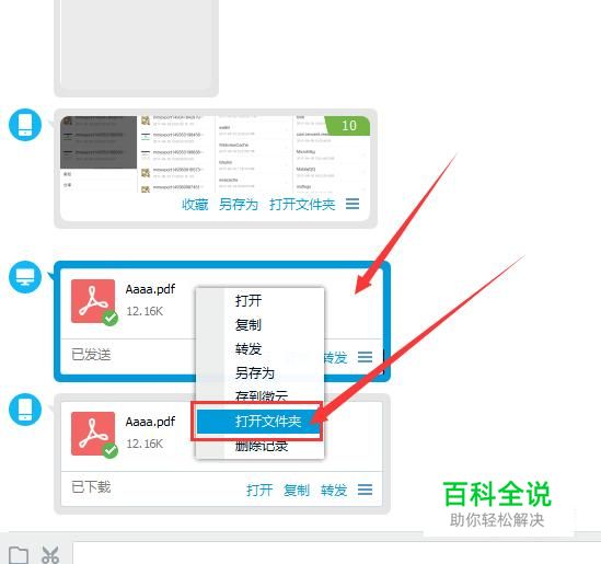 接着在PDF文件上面单击鼠标右键,选择“打开文件夹”。