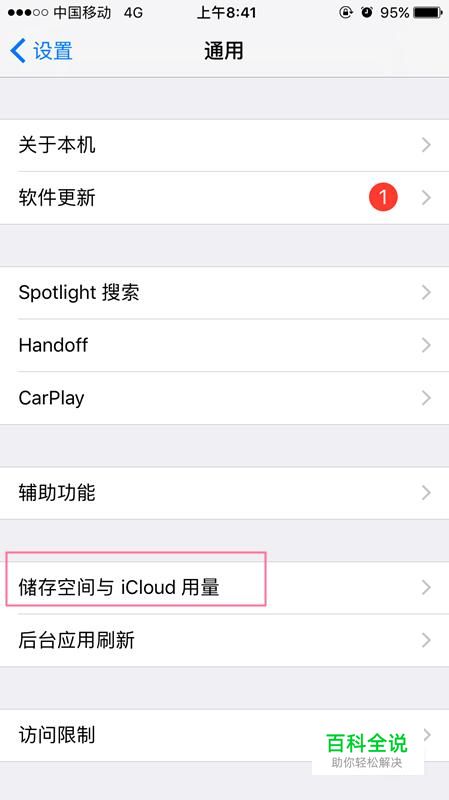 点击储存空间与iCloud用量。