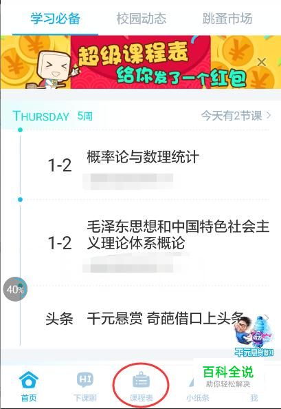 打开我们的超级课程表app,点击下方的“课程表”。
