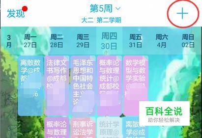 在课程表页面点击右上角的“+”。