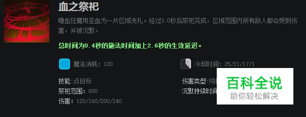 血之祭祀是血魔对一个范围释放技能,短暂延迟后受到技能影响的单位会受到伤害并被沉默。