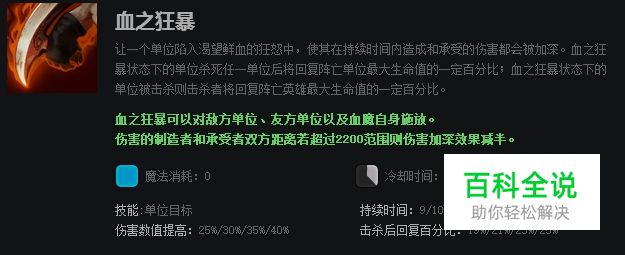 血之狂暴能让血魔获得伤害加成并在杀死敌方后恢复血量。