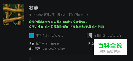 发芽是先知限制敌方移动的微控制技能,可以对敌方英雄使用,也可以对指定区域使用。