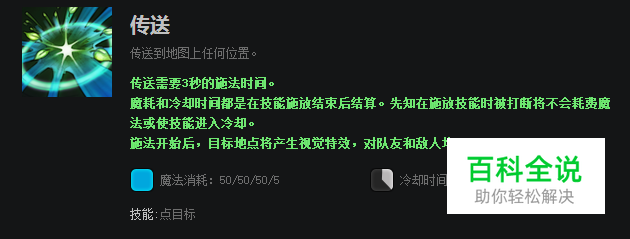 传送技能可以选择地图任意进行传送,需要3秒的施法时间。