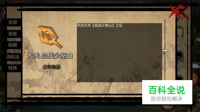 天关血战少室山之证可以在天关江湖异人的第四关刷到,如果运气好的话,在其他任何副本,取得战斗胜利之后都有几率获得天关血战少室山之证,拿到天关血战少室山之证后就可以在天关选择血战少室山这个副本了。