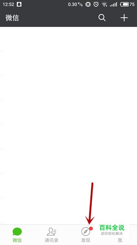 进入微信界面后,在下方菜单栏中,选择“发现”