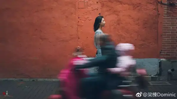 保持手机的绝对稳定,人物保持不动,开始拍摄,身后的流动人群就有慢门的效果了。