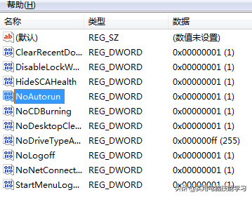 3.依次打开HKEY_CURRENT_USER\SOFTWARE\MICROSOFT\WINDOWS\CURRENTVERSION\POLICIES\EXPLORER