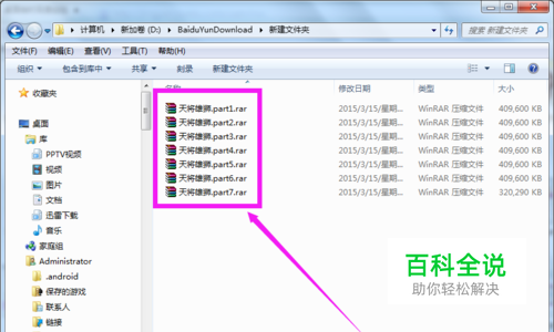 压缩完以后,小伙伴们就可以看到原来的整个文件按照预先设置好的条件,被分割压缩成了七个文件了。