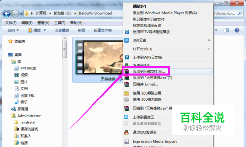 这个时候,我们就特别需要通过分割来压缩整个电影文件了。首先,右击一下这个电影文件,在弹出来的列表选项,选择“添加到压缩文件”。