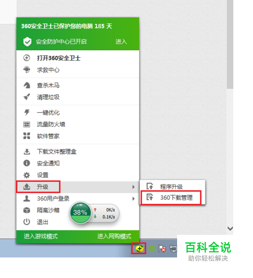 分析原因,发现公司使用的是代理网络,所以需要设置代理服务器。在桌面右下角点击360右键,升级,360下载管理