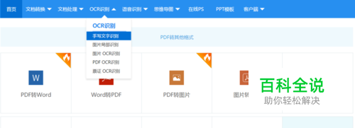 首先我们想要将手写字在线识别,肯定是需要一台电脑,我们进入浏览器直接搜索进入到这样一个在线网站的首页面里面,我们在导航栏中找到OCR识别那一栏,点击-手写文字识别。