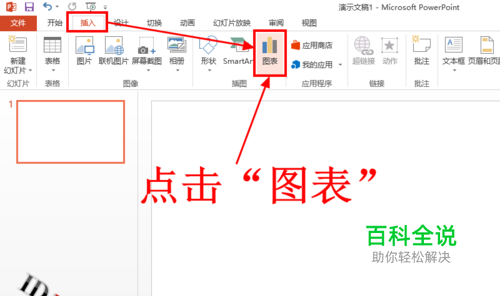 打开PPT文稿,然后点击功能区 插入选项卡中的图表选项。