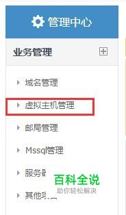然后在点击“管理中心”导航里面的“虚拟主机管理”。