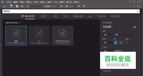 首先打开ps软件,新建一块画布,画布的参数设置为800*800,背景色设置为白色。