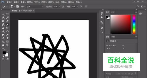 将前景色设置为黑色后,使用画笔在画布中绘画线条。