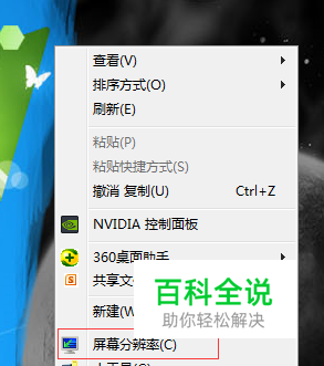 在桌面空白处点击鼠标右键,点击“屏幕分辨率”