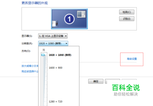 进入设置后发现无640*480分辨率,此时点击“高级设置”