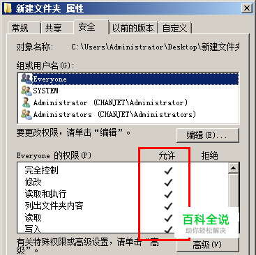 例如给chanjet文件夹添加“eneryone”用户完全控制的权限 右击chanjet文件夹,单击“属性”