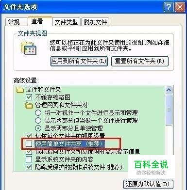 于在XP系统中,默认情况下文件夹的属性中是没有“安全”这一项的,要是想要设置文件夹的权限,则需要手动设置一下。 添加“安全”选项卡,操作步骤:双击打开“我的电脑”—— “工具”菜单下单击“选项”—— 单击“查看”页签,在高级设置框中找到“使用简单文件共享”项把前面的√去掉,后单击“确定”