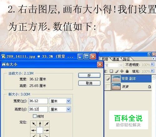 右击图层,设置画布大小,我们将它设置为正方形,数值如图所示: