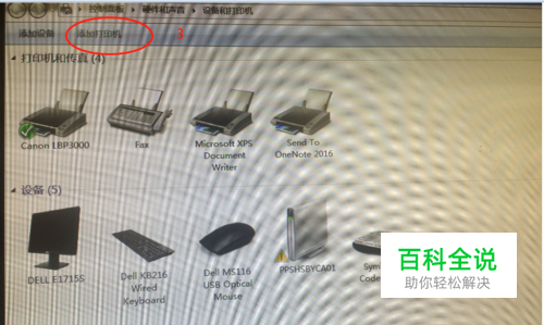 1、首先打开开始---》设备和打印机,然后找到,添加打印机按钮
