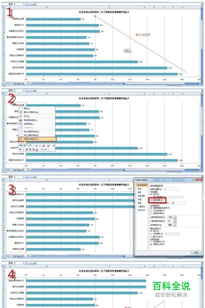 excel中条形图的条目排序与逆序