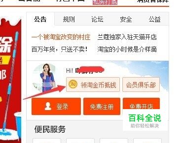 打开淘宝网,登陆淘宝账号,点领取淘金币进入。如图示
