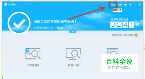 假如您的文件不幸被360杀毒软件误删除了,那么第一步先查看查杀日志。 打开360杀毒软件,点击左上角日志。如下图