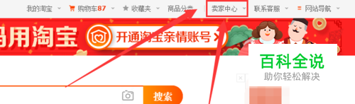这个方法比较简单,我们只要打开浏览器然后打开淘宝网页,然后登录自己的淘宝帐号。在界面的右上角就会看到一个“卖家中心”然后点击它,如下图所示。