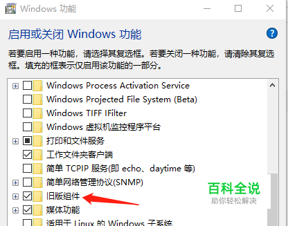 在“启用或关闭windows功能”的页面下面找到“旧版组件”