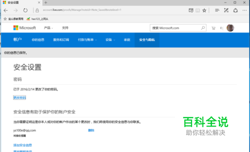 上面的步骤之后,会打开Microsoft账户主页,在此页选择 更改密码