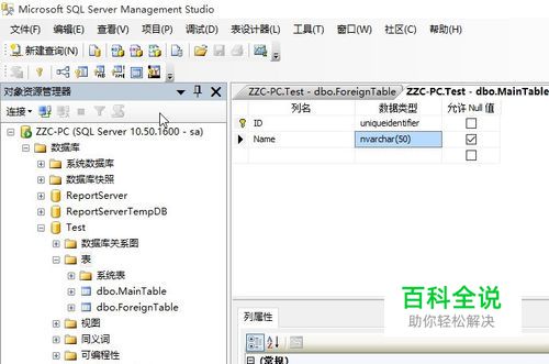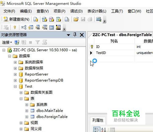 首先建立两张表:主表-MainTable和外键表-ForeignTable,主表的主键为ID,外键表中的字段TestID为外键,参照主表的ID。