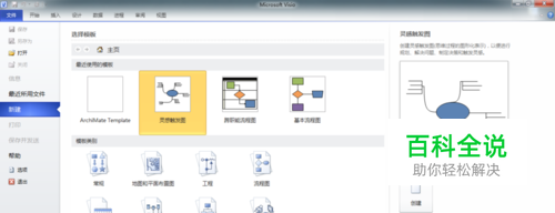 打开Visio,新建一个Visio文件,在新建文件的模板类型当中,选择『灵感触发图』。