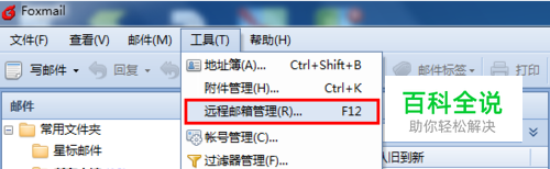 1、打开foxmail,单击工具,选择远程邮箱管理: