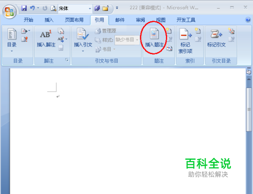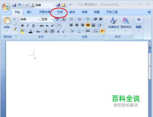 打开一个Word文档,点击菜单栏的”引用“(如图);