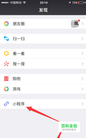 打开微信,进入发现栏——小程序。