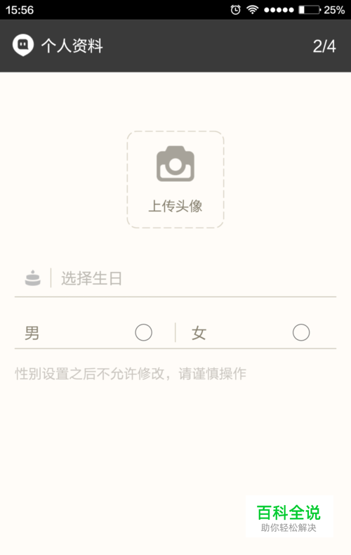 输入完用户名之后,我们就该输入自己的年龄,性别以及上传头像了。
