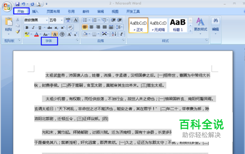 选中有背景的文字,点击“字符底纹”即可(如图);