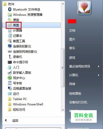 第一步:在电脑桌面“开始”中找到“画图”,并打开。