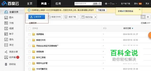 【登录百度云盘】登录百度云盘直接点击【上传文件】。