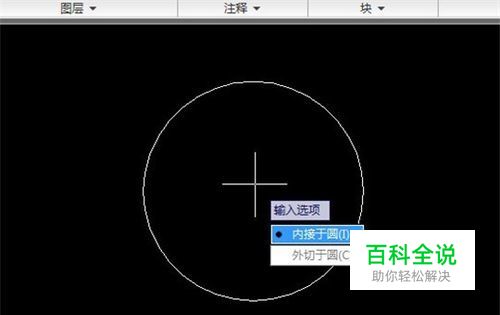 使用POL多边形快捷键,选择内接于圆,以圆心为中点,绘制一个正五边形。