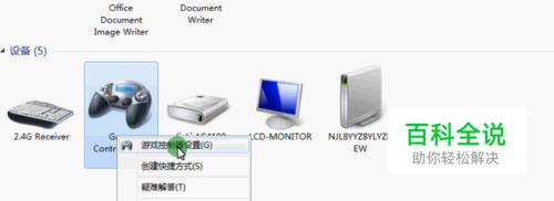 在设备和打印机界面可以看到手柄图标,右键点击该图标,点击第一项。