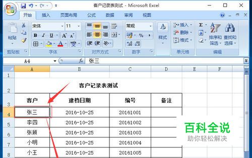 打开已建立好的Excel文档,如下图,在主表格中进行添加链接,实现主表中的客户名称快速链接到同文档中的客户详细标签表中,如下图。
