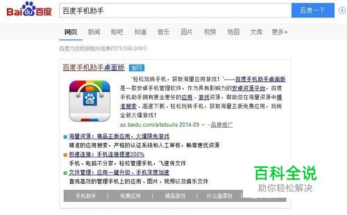 打开百度首页在搜索栏中输入【百度首页助手】,在搜索的结果页中打开官网在官网中下载百度手机助手;