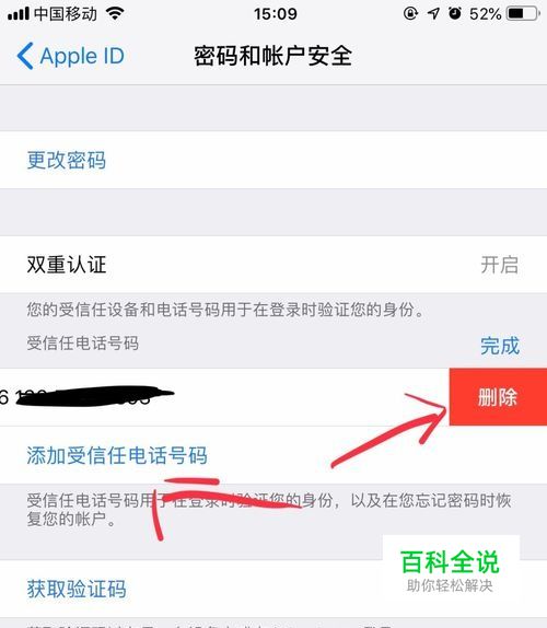 这个号码删除后,我们再添加一个受信任号码就可以了、输入我们当前的手机号码,然后点击发送会收到一个验证码,输入验证码就可以了。