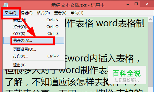 我们打开txt文本文件,点击左上角的“文件”→“另存为”。