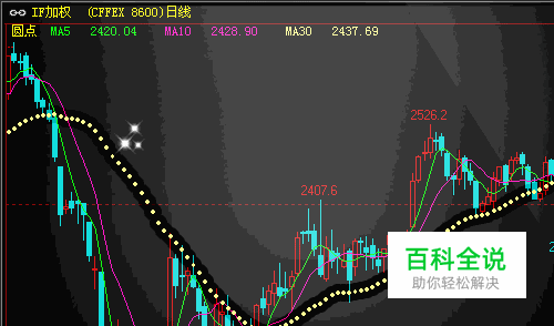 2、绘制小圆点线 MA5:MA(C,5),COLORGREEN; MA10:MA(C,10),COLORMAGENTA; MA30:MA(C,30),CIRCLEDOT; //将30周期均线绘制成小圆点。